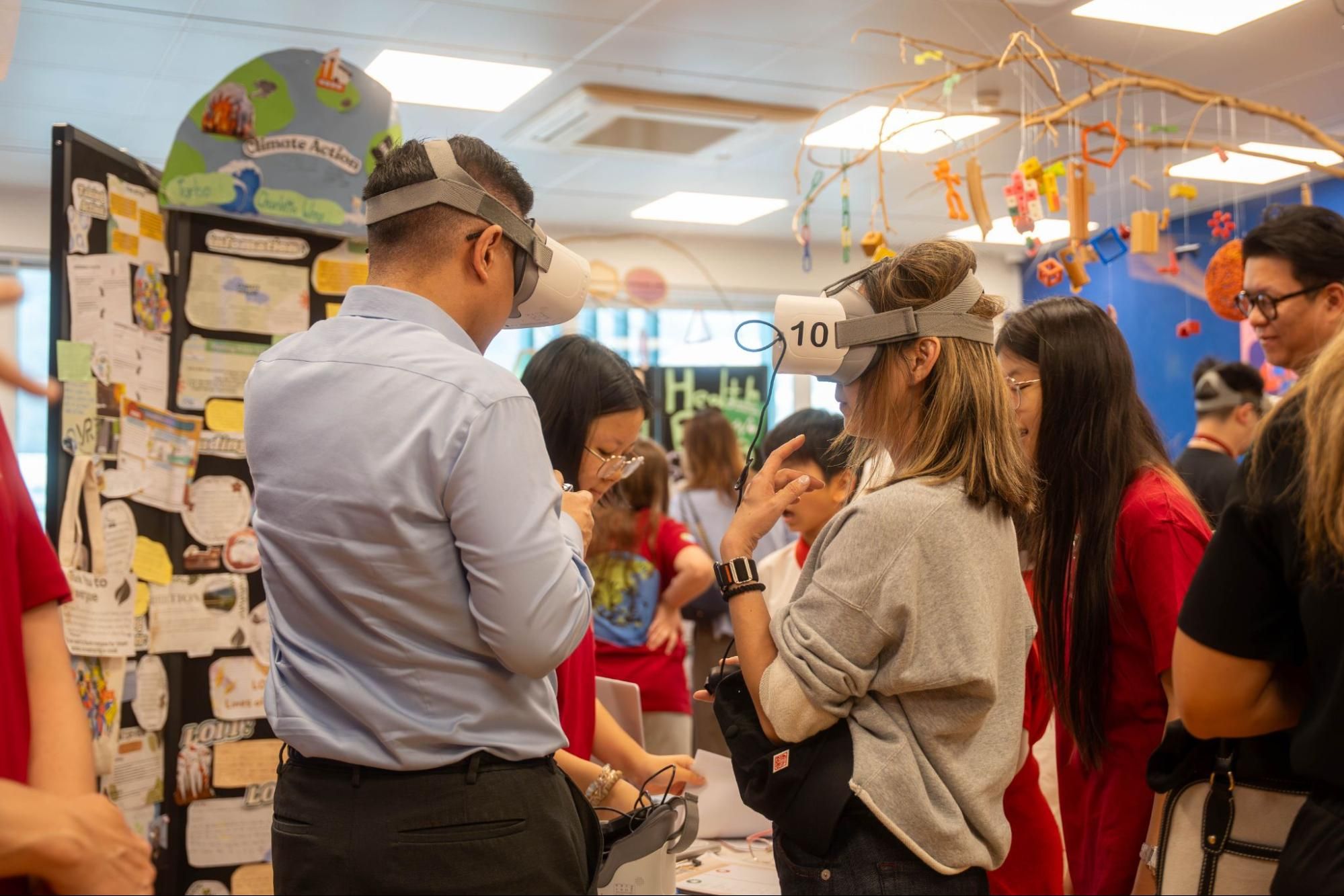 The event kicked off with a creative mini-concert featuring recorder ensembles, singing, dancing, and piano performances. Guests then explored the interactive exhibition, where students showcased their findings through VR experiences, games, and dynamic presentations.
