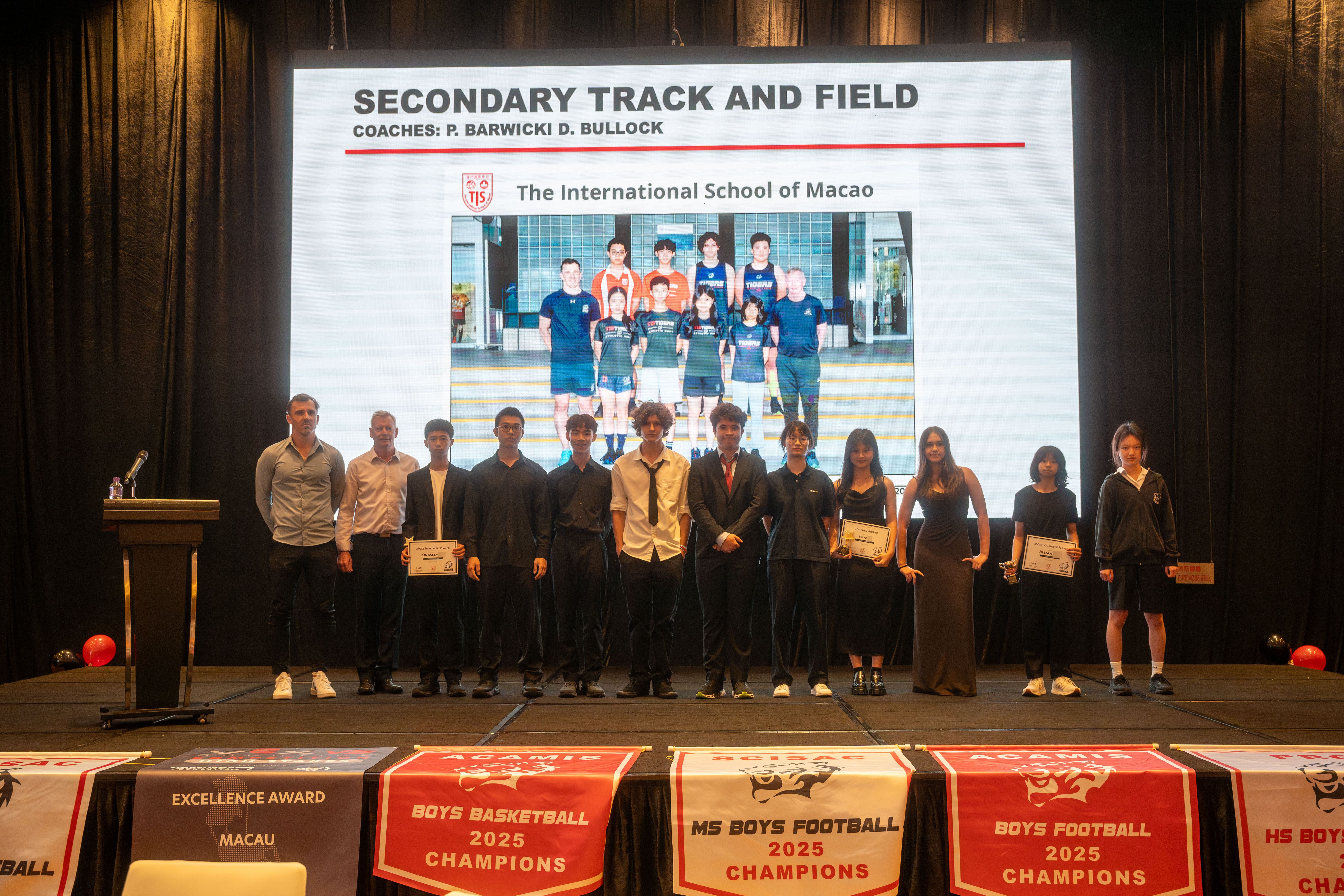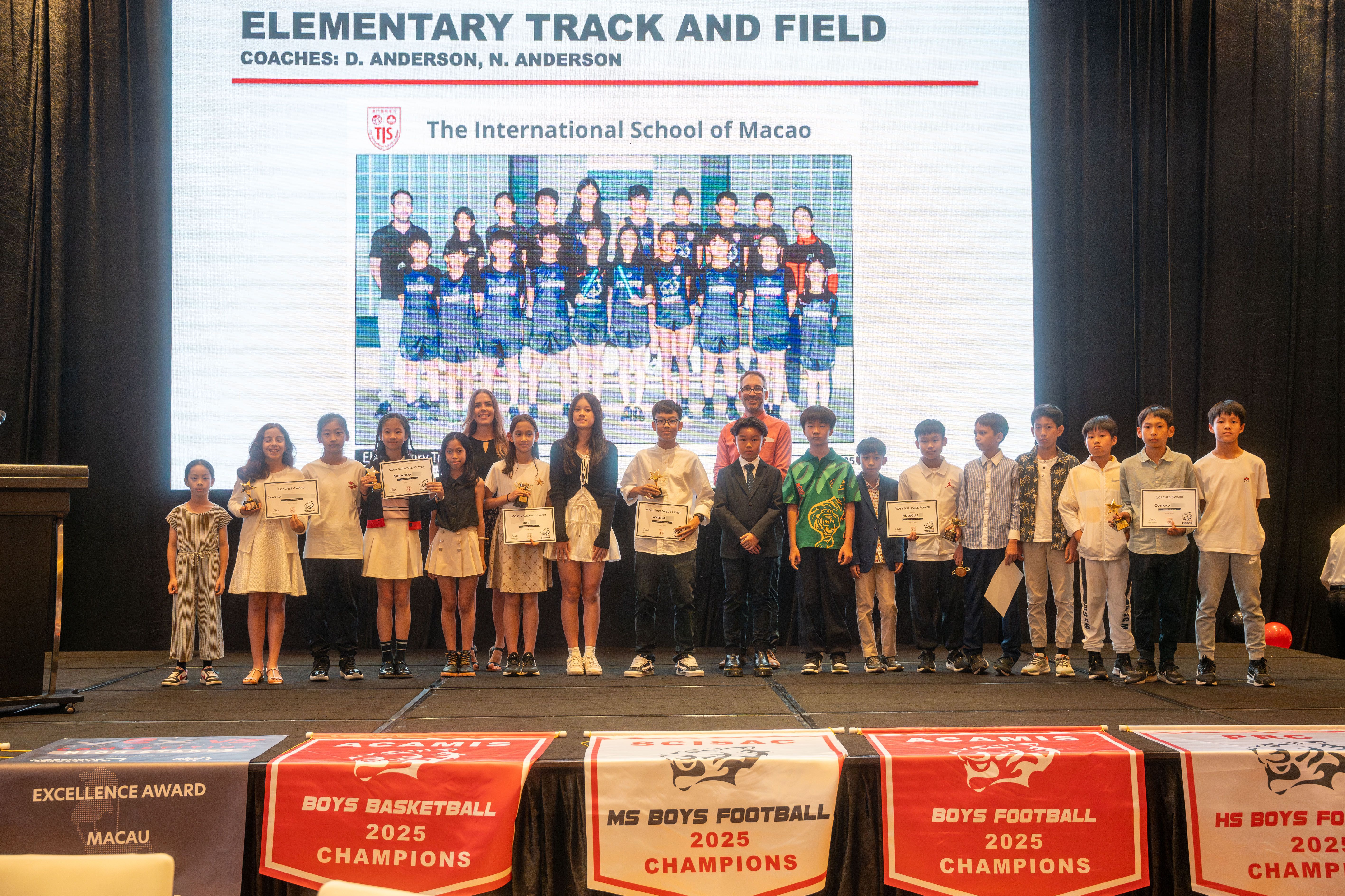 As the sports season comes to a close, it’s time to bring together athletes, coaches, families, and friends to celebrate the remarkable achievements of our TIS Tigers at the annual TIS Athletic Banquet 2025! This has been an outstanding year, with our athletes truly excelling across different competitions and pushing themselves to new heights. Notable highlights include our 14 and under girls securing the First Place in the Long Jump, while our 19 and under girls took home the Third Place win in the 4x100m relay, at the ACAMIS Track & Field, the under 12 boys basketball being awarded Third Place in the Macau Junior Basketball League, and our TIS swimmers’ phenomenal performance at the Spring Splash Swim Competition, racking up a total of 225 points, with 16 First Place wins, 5 Second Place wins, and 4 Third Place wins individually! In the DSEDJ tennis competition, Group C Girls secured the first place win, while in table tennis, the girls won the second place! The DSEDJ swimming competition was particularly impressive, with the team earning 8 gold, 5 silver, and 5 bronze medals! Among the girls in Group B, a new record was set for the 50m backstroke and the 100m freestyle!